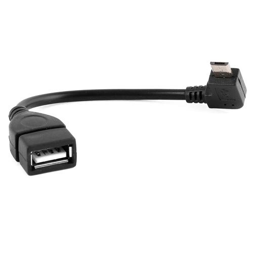 – Cable USB 2.0 OTG con conector acodado tipo Micro USB B macho en un extremo y tipo USB A hembra en el otro