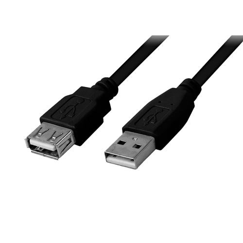 Cable prolongador USB 2.0 con conector tipo A macho en un extremo y tipo A hembra en el otro.