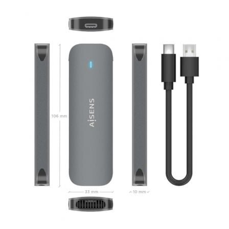Caja Externa para Disco SSD M.2 SATA Aisens ASM2-006GRY/ USB 3.1/ Sin tornillos