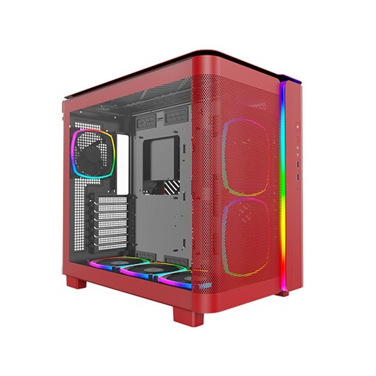 Lateral: 140mm×2 (Ventiladores ARGB PWM Reversos) (Compatibilidad con GPU: 275mm con refrigeración líquida de 63mm de altura) Inferior: 120mm×3 (Ventiladores ARGB PWM Reversos) Trasero: 120mm×1 (Ventiladores ARGB PWM) |