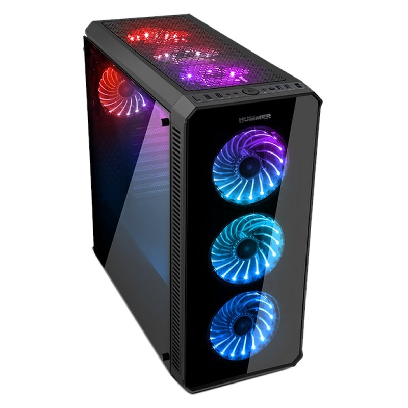 Compatible con placas E-ATX, ATX, M-ATX e ITX, Hummer TGX Rainbow es un chasis tipo torre con un diseño vanguardista y perfecto para montar equipos de altas prestaciones.