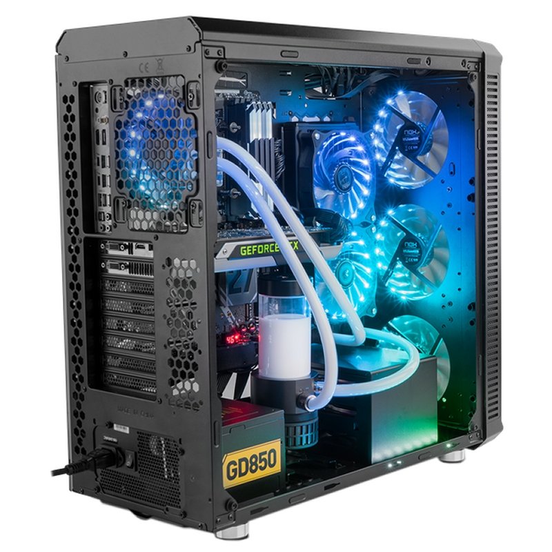 Como chasis pensado para la creación de equipos de alto rendimiento, Hummer TGX Rainbow ofrece la posibilidad de albergar sistemas de refrigeración líquida para un enfriamiento superior que mantenga en perfecto estado el funcionamiento de todos los componentes.