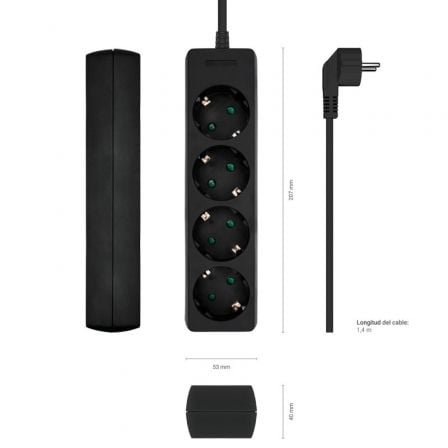 Regleta Aisens A154-0534/ 4 Tomas de Corriente/ Cable 1.4m/ Negro