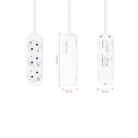 Regleta Nanocable 10.38.0003-NS/ 3 Tomas de Corriente/ Cable 1.4m/ Blanca